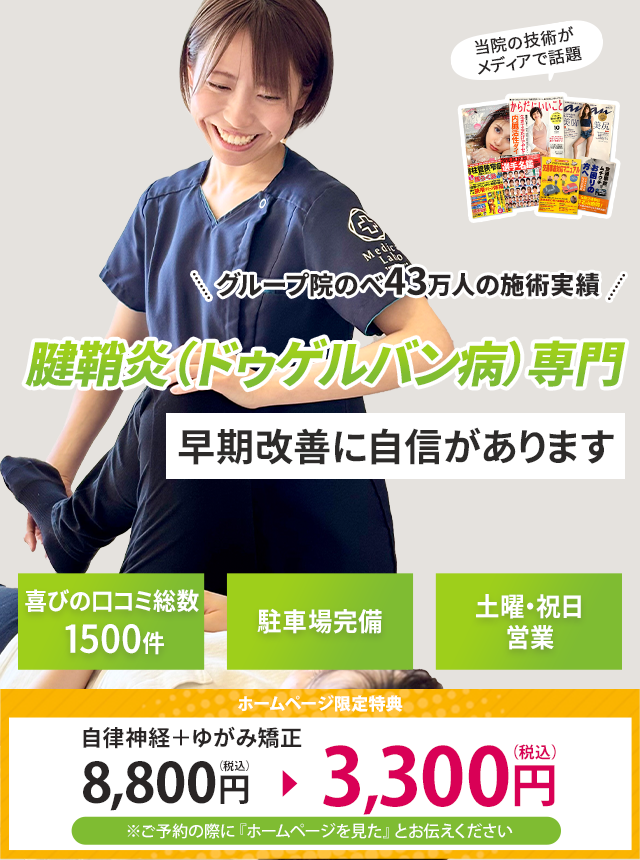 軽い症状の場合、整形外科や一般的な整骨院などで腱鞘炎が改善される場合もありますが、実際には、