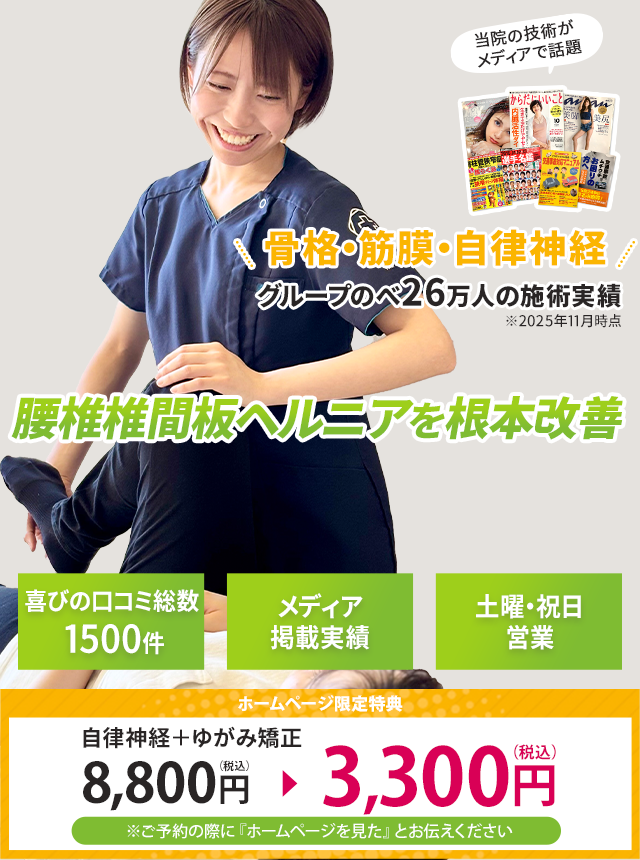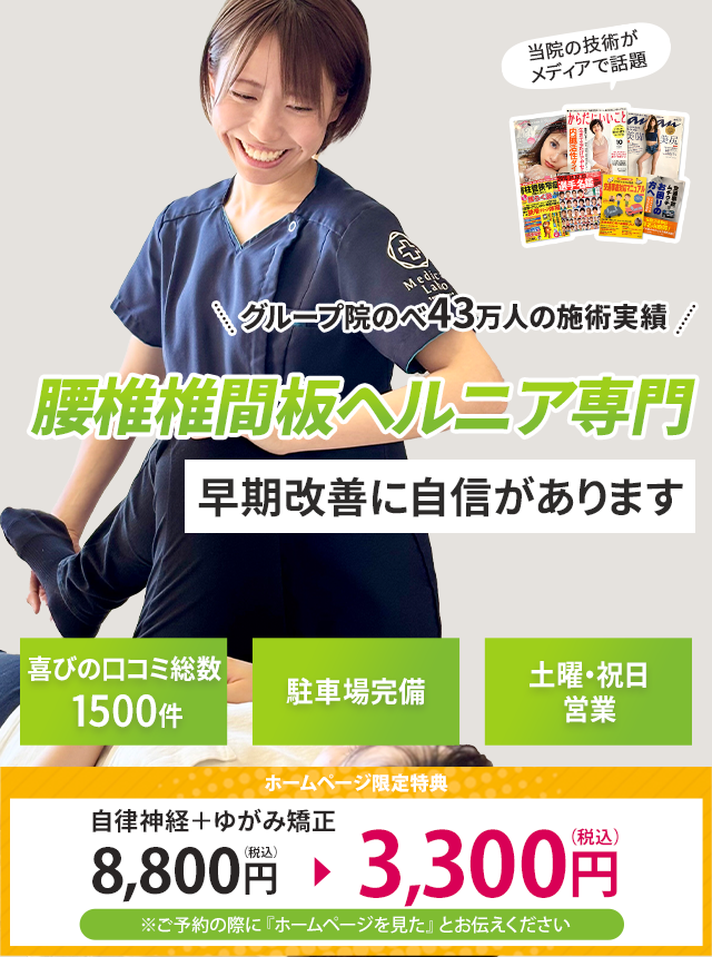 もしあなたが、どこへいっても良くならない腰椎椎間板ヘルニアの症状(痛み・しびれ)でお困りなら、ぜひ一度当院の施術をお試しください。