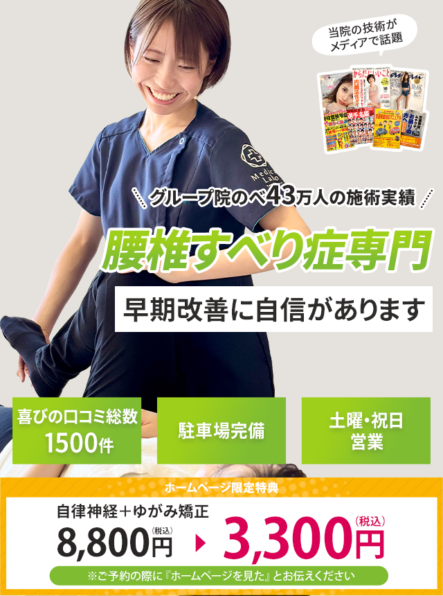 当院には、腰椎すべり症でお悩みの方が多く来院さて、早期改善している事例が数多くあります。