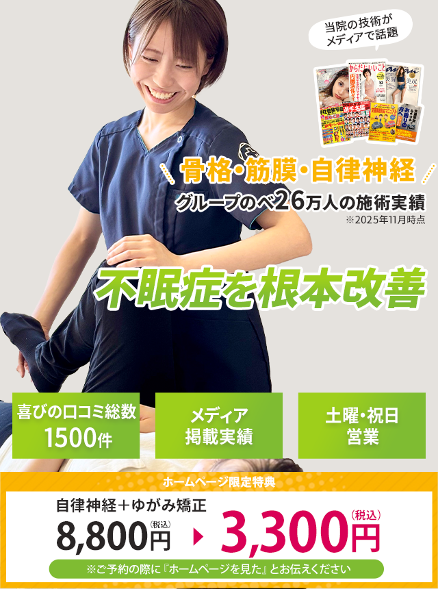 当店ではこのように3つの整体方法で不眠症を改善へと導きます。